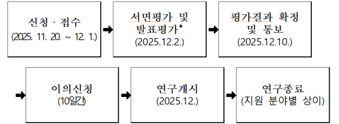 *(서면평가·발표평가) 연구규모, 연구주제 등에 따라 구성된 선정평가위원회가 진행